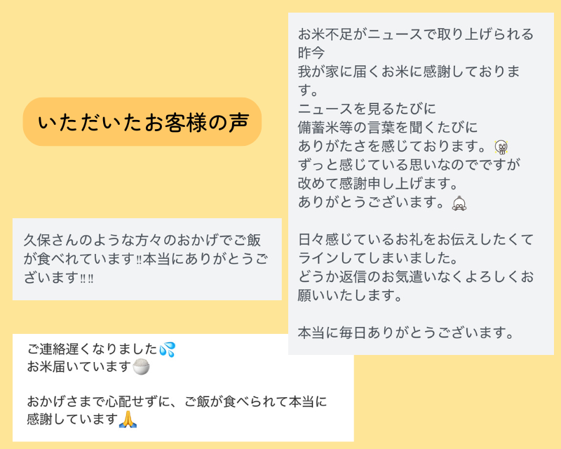 そんな中、久保さんちのお米「定期便」をご利用中のお客様からは、