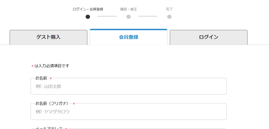 6. 会員登録タブを選択し、ご住所などをご記入ください。