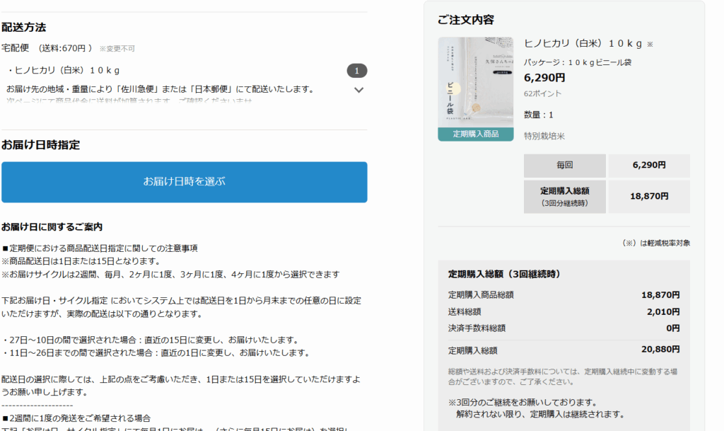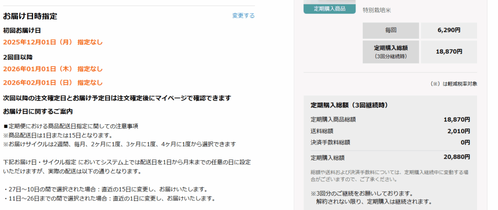 【R7年産 追加販売】定期便のご注文画面(操作方法)について
