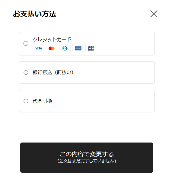 ログイン状態でお申込みいただいた場合は、ご注文後に「銀行振込」→「クレジットカード決済」などお支払方法の変更も可能です。