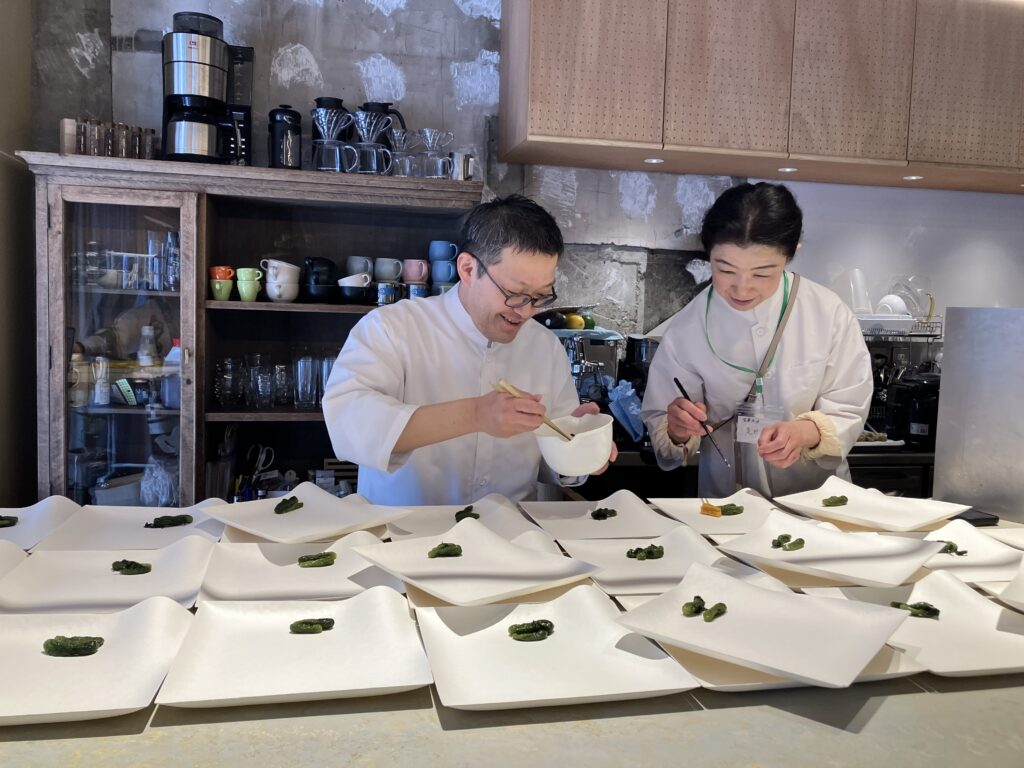 ↓ スタッフさん(フレンチのシェフで、坐来さんで板前修業をされている)も、お料理を温めたり、ご飯をよそったり。プロの手際の良さに衝撃を受けたのでした。男性スタッフさんも配膳のお手伝いをいただきました!
