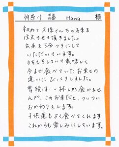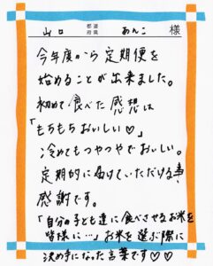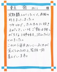 これから毎月おいしいお米が食べられるねと、家族一同喜んでいます。