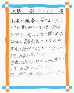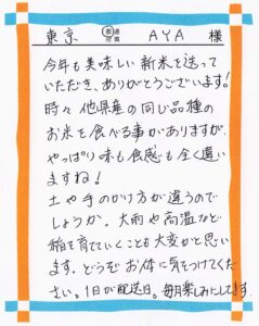 今年も美味しい新米を送っていただき、ありがとうございます!