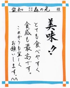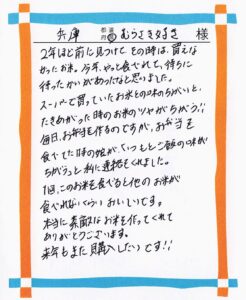 こんなにもおいしいお米を届けて頂き嬉しく感謝しております。