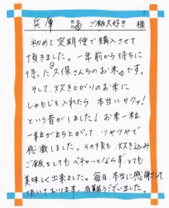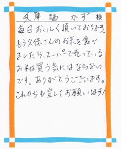 久保さんのお米の存在を知って毎月来るお米は最高に美味しいです。
