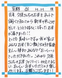 これから久保さんちのお米ファミリーに加えてもらい、おいしいお米いただくのを楽しみにします。