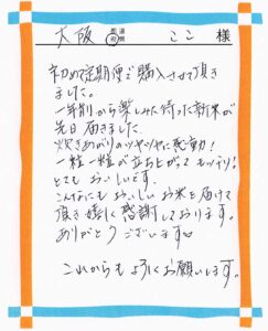 今後も注文や発送でお忙しいと思います。寒さも厳しくなってきますので、お身体に気をつけてお過ごしください。