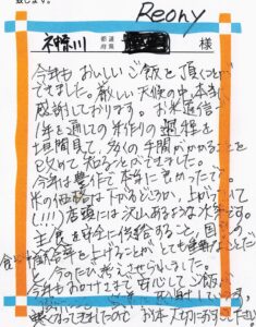 お米通信で1年を通しての米作りの過程を垣間見えて、多くの手間がかかることを改めて知ることができました。