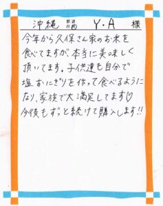 久保さんのお米の存在を知って毎月来るお米は最高に美味しいです。
