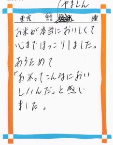 こんなにもおいしいお米を届けて頂き嬉しく感謝しております。