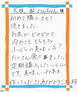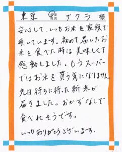 これから毎月おいしいお米が食べられるねと、家族一同喜んでいます。