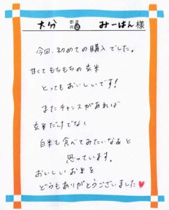 いつもお美味しい玄米をお送り下さりありがとうございます。