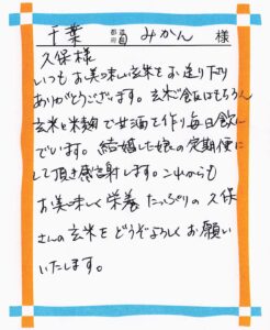 これからもお美味しく栄養たっぷりの久保さんの玄米をどうぞよろしくお願いいたします。